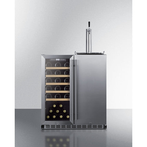 The Summit 30" Wide Built-In Indoor/Outdoor Combination Wine Cellar/Kegerator is the ultimate dual-purpose beverage refrigeration solution for home entertainment. Perfect for indoor or outdoor kitchens, this versatile appliance features a dual-zone setup that caters to wine enthusiasts and beer lovers alike. The left side houses an elegant wine cellar, while the right side serves as a fully equipped kegerator, creating a seamless experience for hosting and enjoying drinks at home. Its sleek stainless steel exterior, professional-grade features, and robust weatherproof construction make it a standout choice for both built-in and freestanding use.
